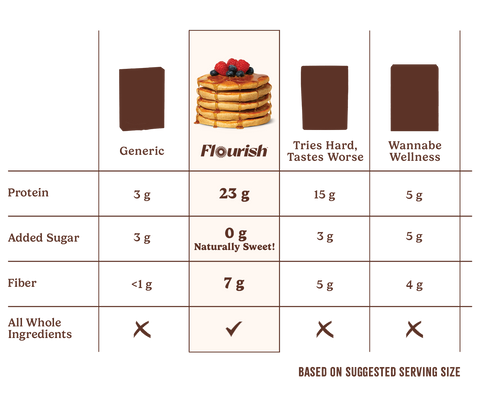 • 🧇 More Than Just Pancakes - Flourish is a healthy solution to any meal. Use it to meal prep frozen waffles, protein bars, muffins, or even donuts! Flourish makes healthy breakfast options truly unlimited.
