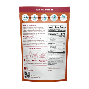Flourish Buttermilk Protein Pancake Mix is the timeless classic you love, with a healthy and tasty twist. Crafted with whole grains and whey protein, this mix is packed with 23g of protein, 7g of fiber and just 1g of sugar, per serving. The best part? Just add water!