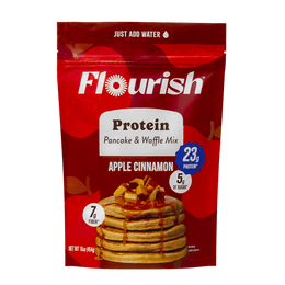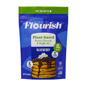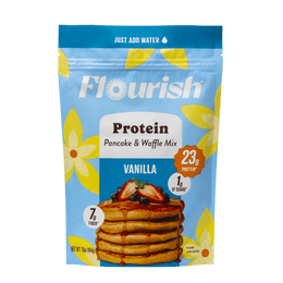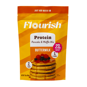 Flourish Buttermilk Protein Pancake Mixย isย the timeless classic you love, with a healthy and tasty twist. Crafted with whole grains and whey protein, this mix is packed with 23g of protein, 7g of fiber andย just 1g ofย sugar, per serving. The best part? Just add water!ย