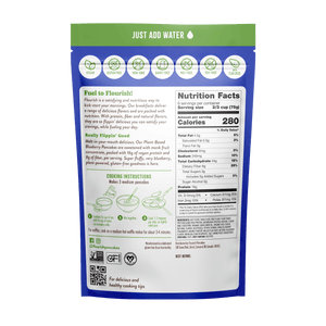 Our NEW Plant Based blueberry protein pancake and waffle mix might be our best yet!ย These insanely delicious pancakes are super fluffy and powered by plants. 100% certified Gluten Free, 100% certified Vegan and 100% certified non-GMO, they pack in 16g of protein and 7g of fiber.