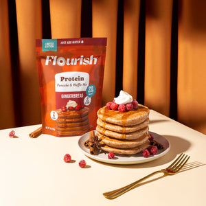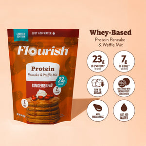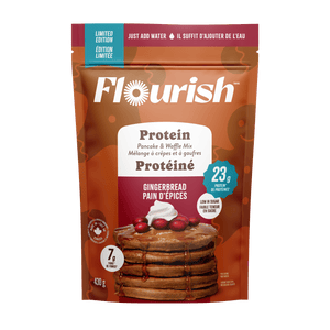 LIMITED-EDITION! Our limited-edition Gingerbread Protein Pancakes are here to put you in the festive spirit, with a taste reminiscent of a classic gingerbread cookie. Crafted with whole grains, sweetened with monk fruit concentrate, packed with 23g of protein and 7g of fibre, per serving.