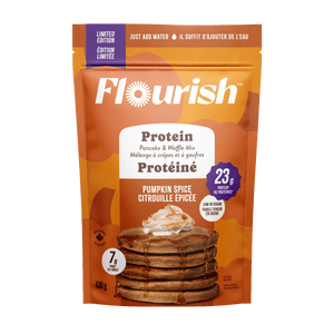 LIMITED-EDITION! There’s something pretty nice about our Pumpkin Spice. These limited-edition pancakes are crafted with whole grains, sweetened with monk fruit concentrate, and packed with 23g of protein and 7g of fibre, per serving. It's breakfast you'll fall for!